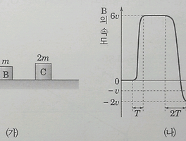 ① 0초일 때의 속도 = 0, 2t일 때의 속도 = v, 4t일 때의 속도 = -v
