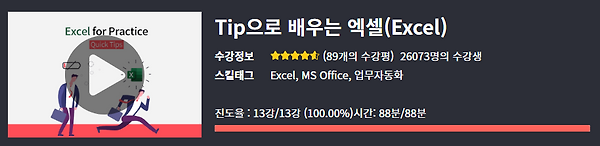 인프런, Tip으로 배우는 엑셀(Excel) 무료 강의 수강 후기
