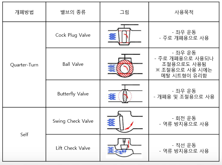 다. 밸브 용도별 종류