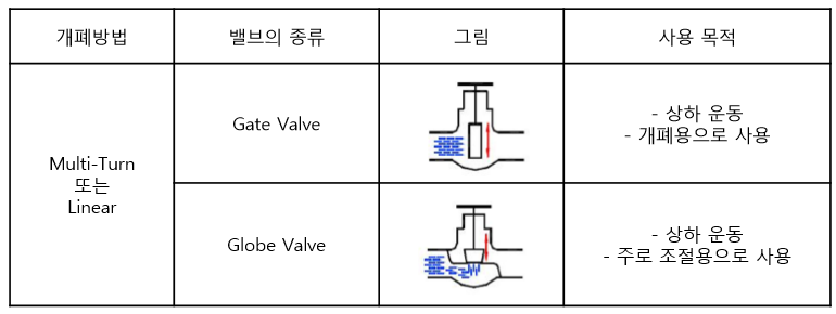 : 다음으로 밸브의 유체제어를 위한 밸브 구동부의 구동특징 즉, 밸브 스템 작동방식에 의한 밸브를 분류하면 다음과 같다.