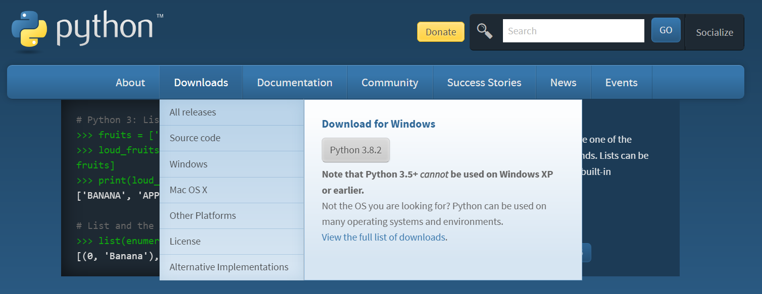 - 링크 : https://www.python.org/