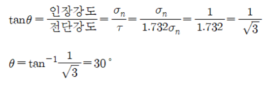 위 그림에서 경사각과 전단강도, 인장강도와의 관계를 파악하기 위해 아래의 그림처럼 간단하게 머릿속에 그려보겠습니다. 문제를 풀 때에는 그림에 직접 그어보면서 생각하시면 편합니다.
