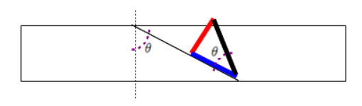 따라서 직각삼각형임을 통해서 아래와 같이 계산하면 경사각(theta, θ)을 구할 수 있습니다.