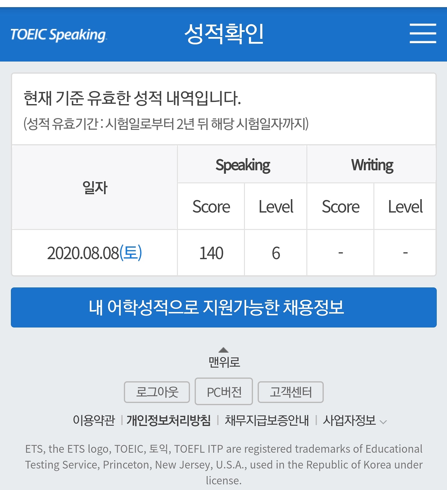 점수가 나온 후 part 3, part 6를 주제에 맞게 제대로 답변했다면 160점도 노려볼 수 있었을거란 아쉬움이 남습니다만..