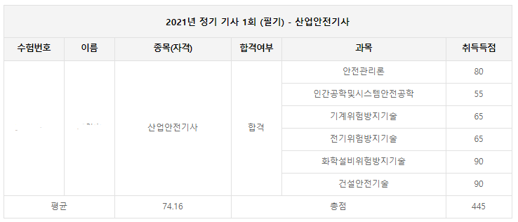 결과는 다행히 89개 정답으로 평균 74점으로 합격하게 되었습니다.
