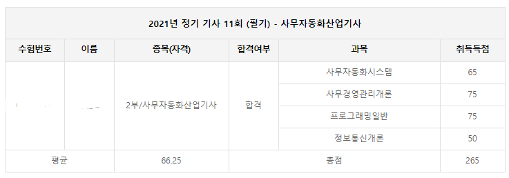 2021년 1회차 사무자동화산업기사 시험에 응시했습니다.