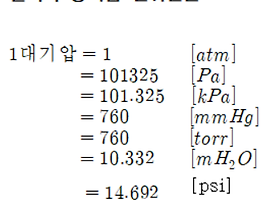 【열역학】공기압 단위변환 (atm,kPa,mmHg,torr,mH2O,psi,bar) 안녕하세요. 이번에는 열역학에서 대기압이나 공기압에 대한 포스팅입니다. 오늘 하루도 파이팅하시길 바라며~^^ 열공하세요 공기압(대기압) 단위변환하기먼저, 아래의 이미지를 확인해주세요. 자세히보시면 제일 좌측에 1대기압이라고 적어놓고 각각의 단위(kPa, bar, torr 등)들로 변환해 놓을 것을 확인하실 수 있으실 겁니다. 바로, 아주 공기압 변환을 쉽게하기 위하여 쉽게 외우는 방법을 녹여놓은 것입니다. 1대기압을 기준으로하여 각각의 단위들을 암기해두시면 문제풀이에 적용하기 매우 편합니다. 예를 들어서 문제에 대기압의 1.2배가 작용한다고 했는데 영국계 단위계로 답을 요구한다면, 14.692 psi를 1.2배 해주어서 대입해주면 됩니다. 아주 쉽죠? 이런 식으로 적용하게 되면 문제없이 문제풀이하실 수 ..